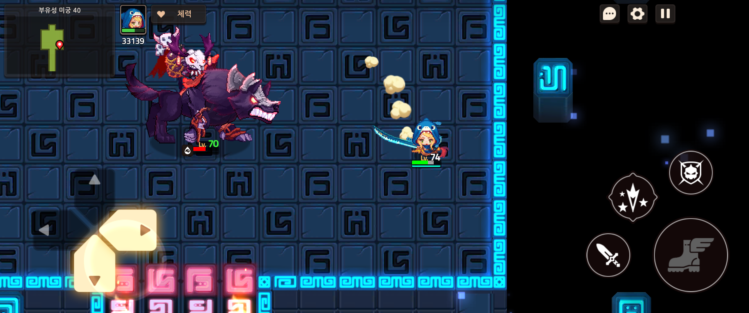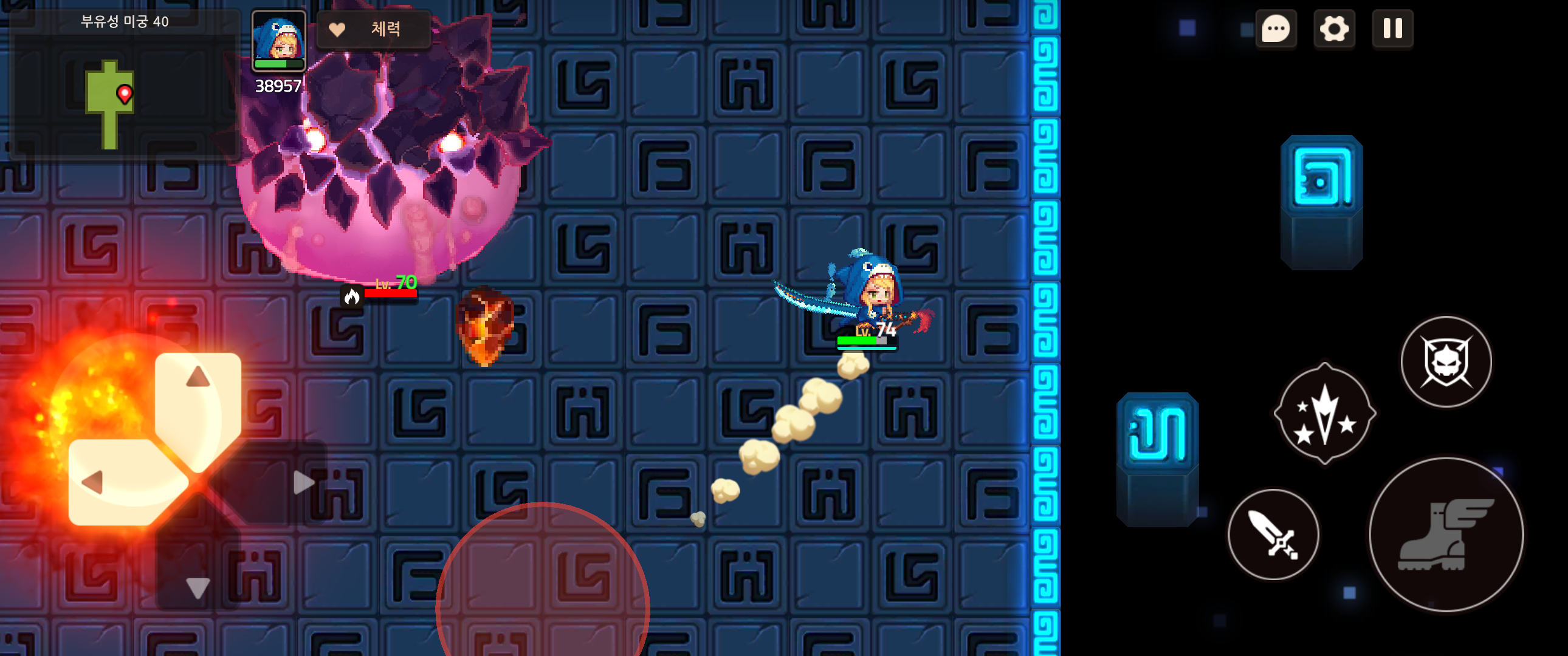 고블린 족장은 파티원과 협동해서 딜찍누가 가능했지만 용암슬라임은 더 딴딴해서 대부분 용암 슬라임 파트에서 파티원들이 썰려나갑니다.