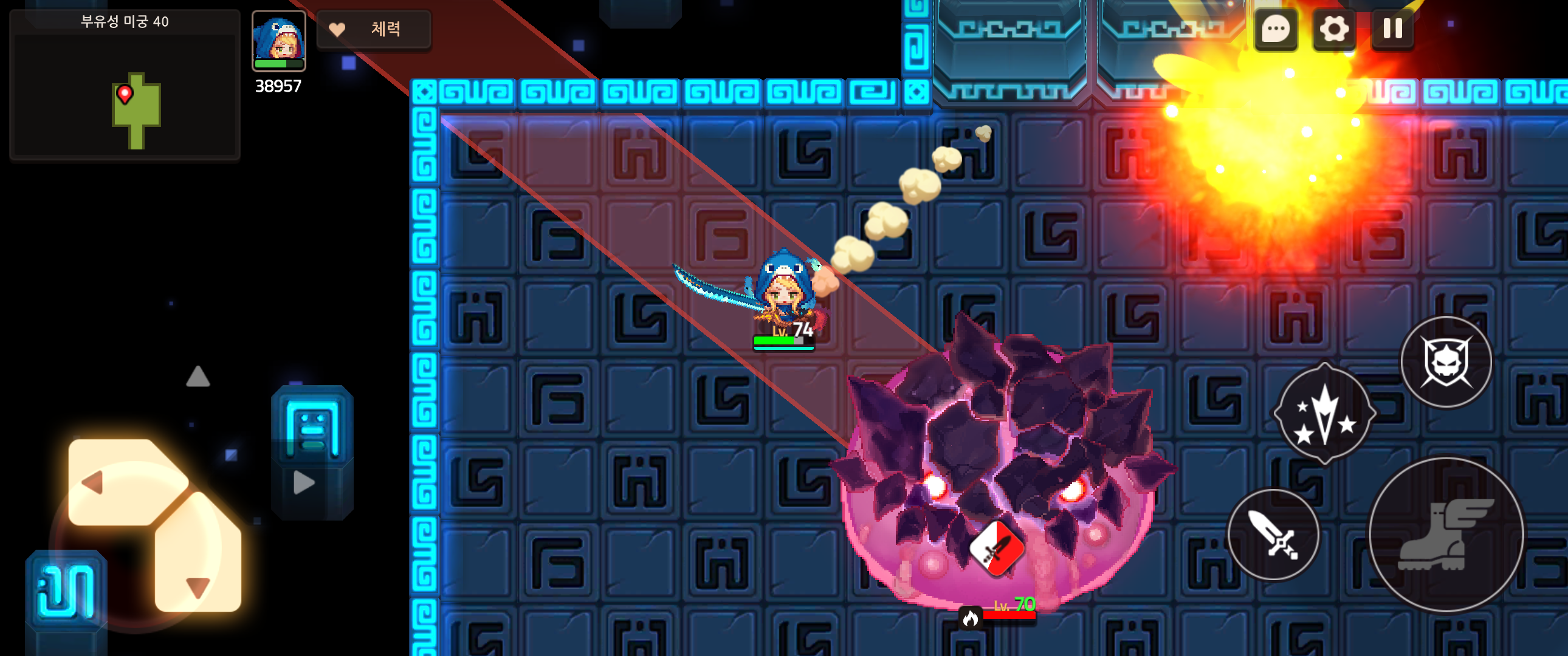 쏘는걸 달려서 피하면 그 불똥이 벽에 부딪쳐서 플레이어가 있는 위치로 떨어집니다. 글로 설명하는것엔 무리가 있으니 모두 아래에 있는 영상을 챙겨봅시다.