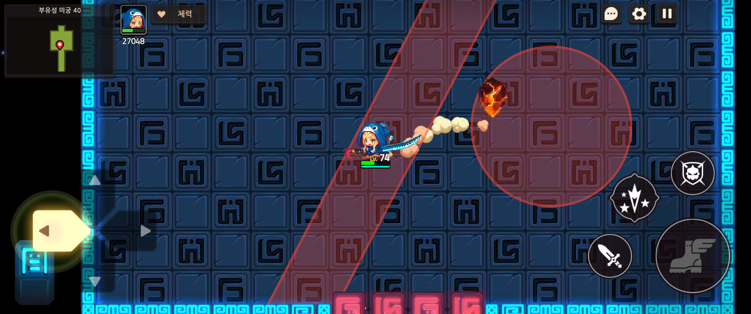 첫째는 찌르기 패턴입니다. 세번 찌르는데 멀리 피해주시거나 대각선 방향으로 피해주시면 쉽게 피하실수 있습니다.