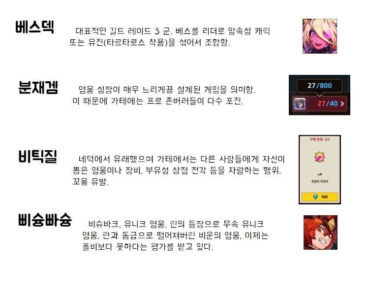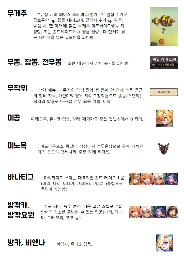 [뉴비 용어 사전] 초성 ㄱ~ㅂ 편 작성자필이|작성시간21.01.31|조회수2,159 목록 댓글 12 글자크기 작게가 글자크기 크게가 [뉴비 용어 사전] 2 편 바로가기↓↓↓↓↓↓↓↓↓↓↓↓↓↓↓ 다음검색 현재 게시글 추가 기능 열기 북마크 공유하기 신고 센터로 신고 댓글 댓글 12 댓글쓰기 답글쓰기 댓글 리스트 작성자은때까치 | 작성시간 21.02.01 재미있네요 ㅎㅎ 다음편도 기대할게요 작성자봉봉타르트 | 작성시간 21.02.08 ㅅ~ㅎ 도 기대합니다 ㅎㅎ 작성자호타(프로 즐겜러) | 작성시간 21.02.16 갈비 추가해주라ㅎㅎ 작성자ßß | 작성시간 21.03.01 가토브리그도 추가... 답댓글 작성자ßß2 | 작성시간 21.03.04 후이앵 댓글 전체보기