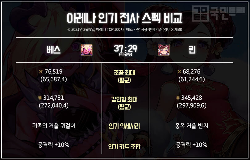 ※ 순위는 2월 9일, 아레나 TOP 100 랭커 정보를 기준으로 선정했습니다.