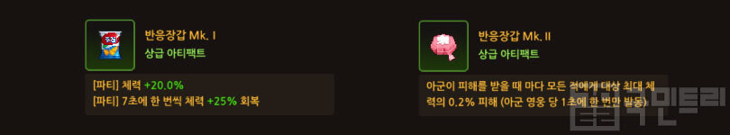 이어 3위는 ‘반응장갑 Mk. I’였다. 체력이 20% 증가하고, 7초에 한 번씩 체력 25% 회복 능력을 가졌다. 보통 기본으로 1개는 사용하며, 일부 랭커는 2개 이상을 써 힐러에게 오는 부담을 줄이고 있다.