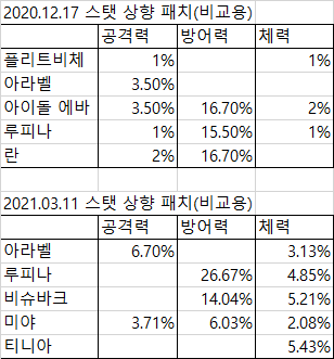 안와닿을까봐 2020년 12월 17일 스탯 상향패치와 비교