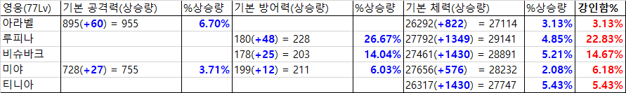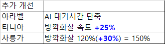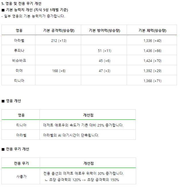 아라벨의 공격력 상향또한 영웅깡공 60 상향으로 6.7% 상향이라 상당히 큰 수치를 올려준 것으로 보임