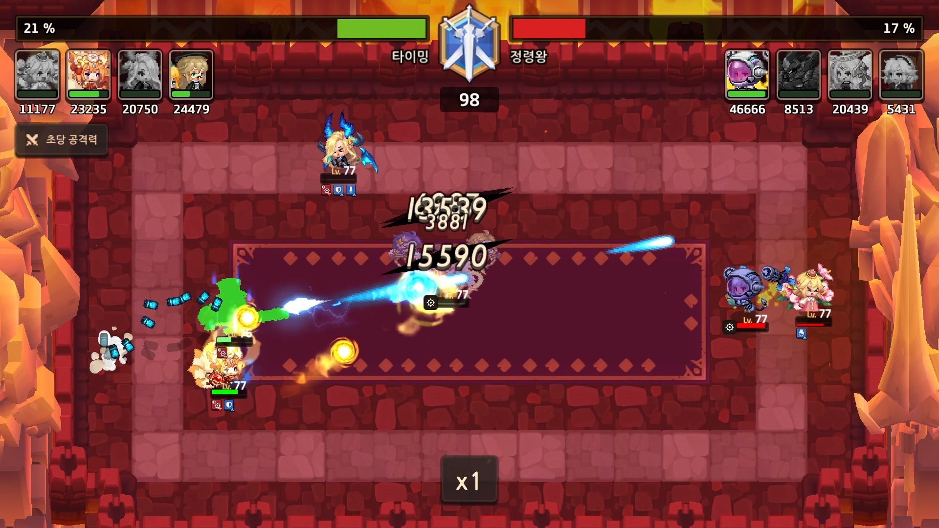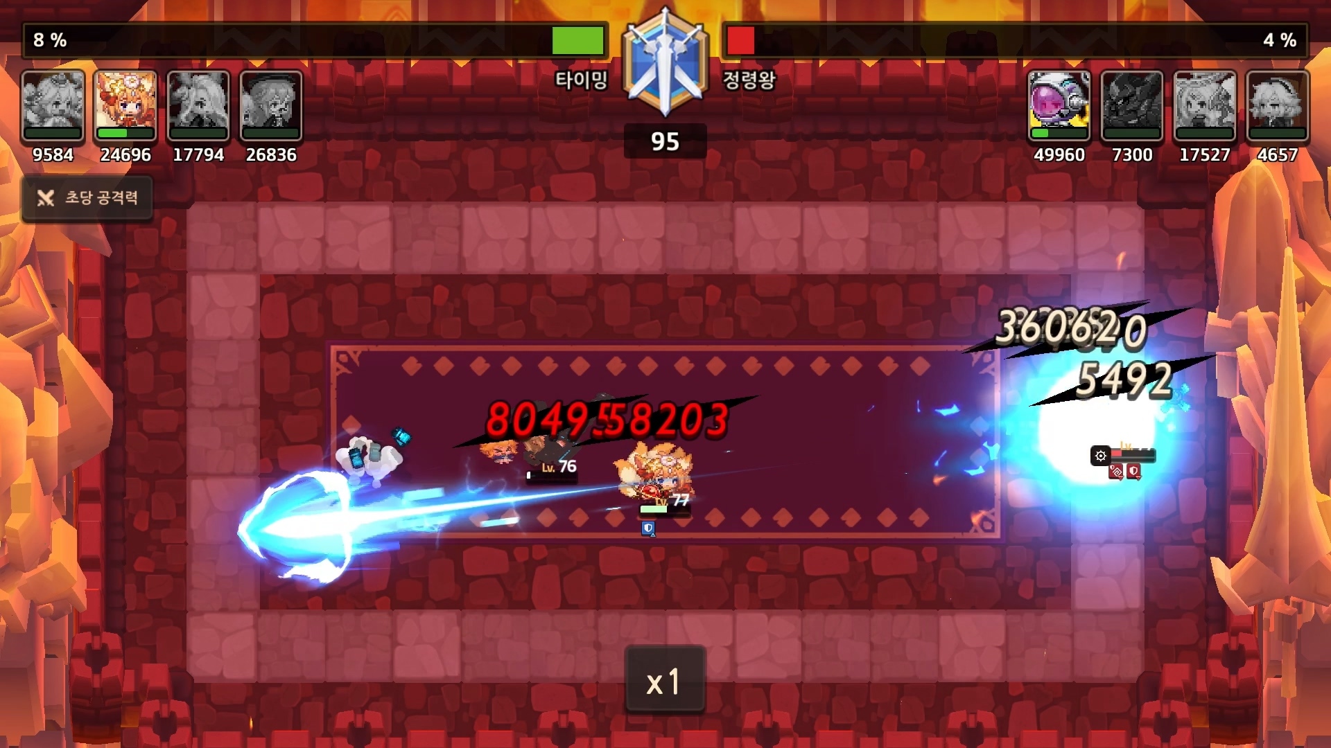 1. 가람 빰치는 공격력 (시작과 동시에 날린 일반공격(?)이 초공13만을 넘어섰고, 이 한방으로 공격측 체력바 9%가 날라감)