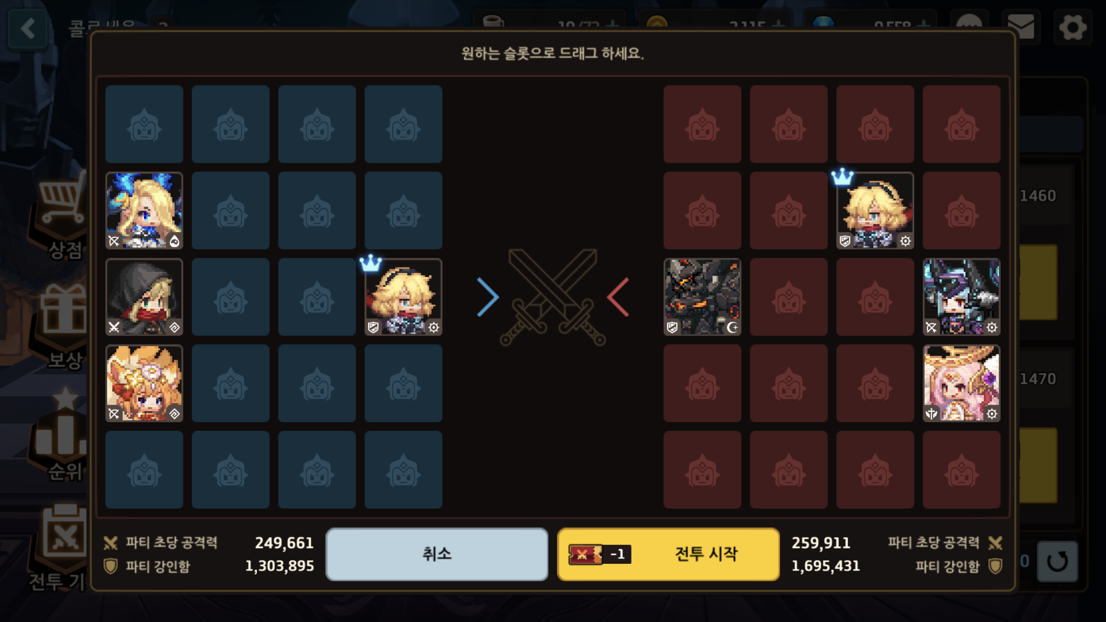 2. 하지만 탱커(광) VS 탱커(암&광) 그리고 딜러(무&무&수) VS 딜러(광)&힐러(광) 속성을 보면 상성상 공격쪽이 우세하다.