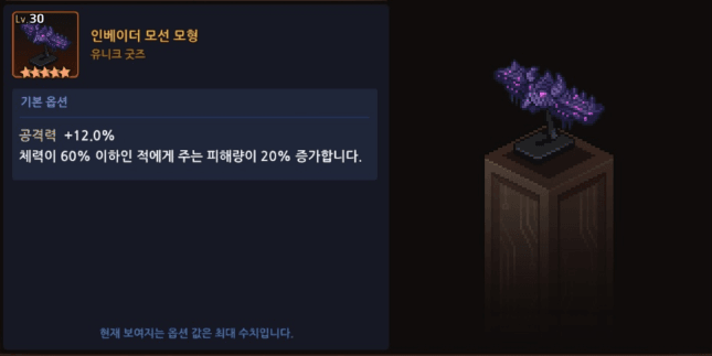옵션 체크 // 공12%, 체력 40퍼 이상 피해량 20% 증가