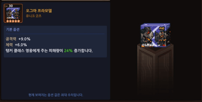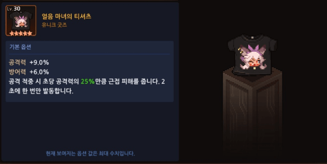30렙 기준 기본 수치 옵션은 공9% + 방 6%