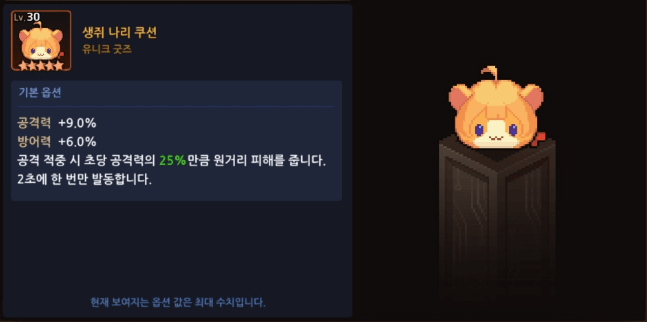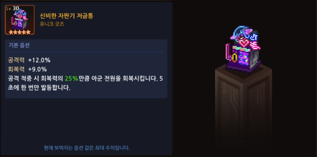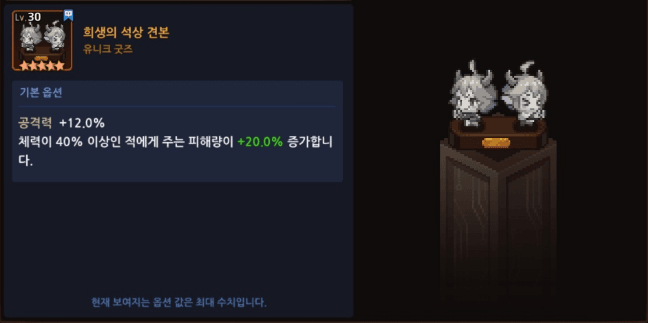 참고로 공%를 컬렉에서 퍼줘서 공12퍼가 다른 유니크 굿즈보단 기본 성능이 낮음