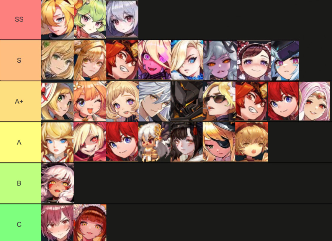 아레나에서 높은 픽률과 뛰어난 승률을 보장함. 전반적으로 그냥(비슈, 비앙카 제외) 길드 레이드에서도 강력한 성능을 자랑하는 성능캐들. 소위 말하는 성능충들이 애용함