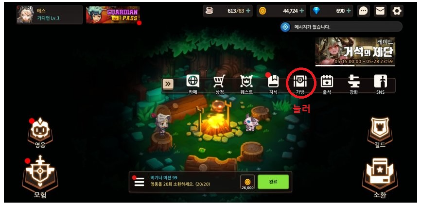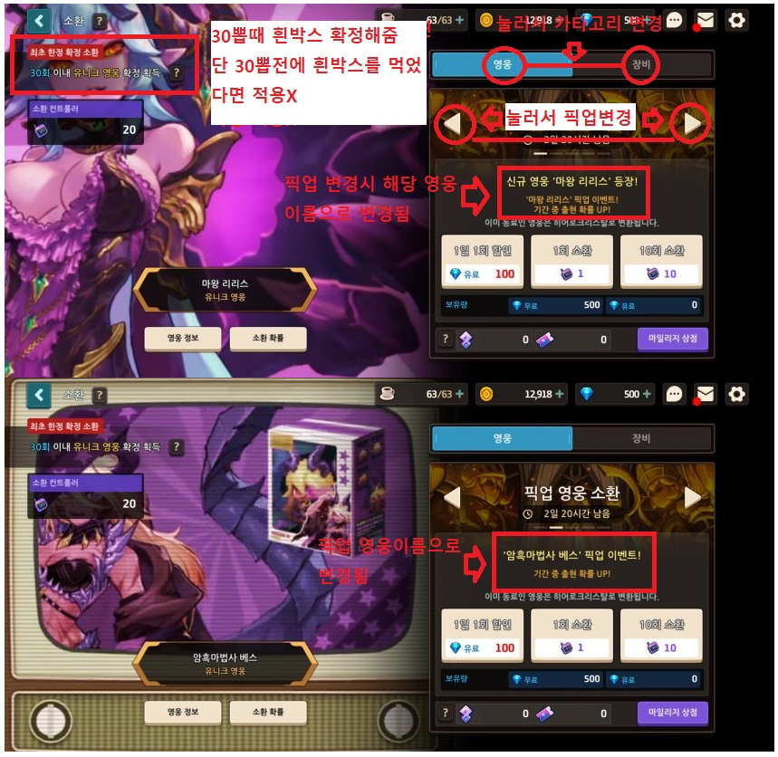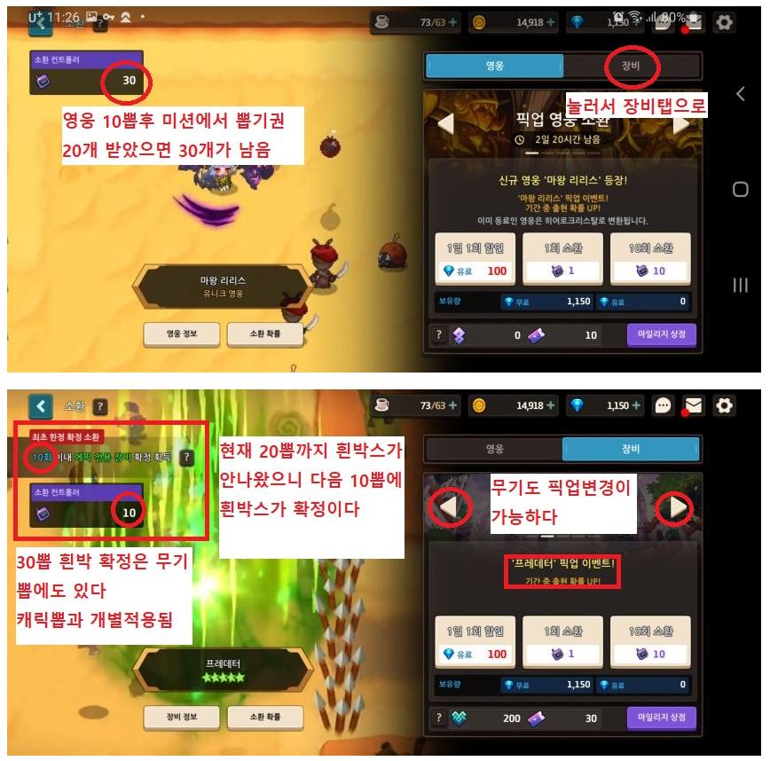 -그 다음은 영웅소환을 해서 추가로 뽑기권 20개를 받아야 된다