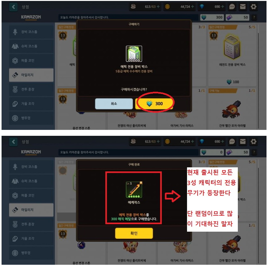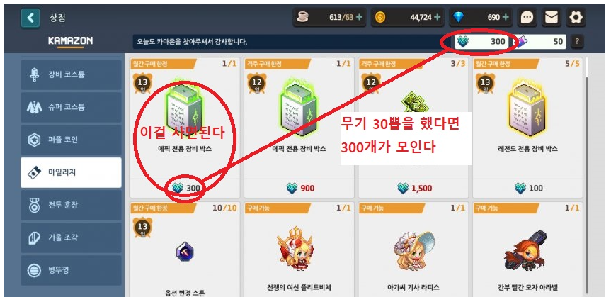 -여기서 에픽 전용 장비 박스라고 써있고 아래에 300이라고 써있는걸 사면된다