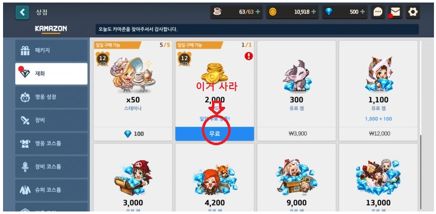 -그럼 위의 스샷처럼 나오는데 무료라고 써있는걸 한번 사면된다