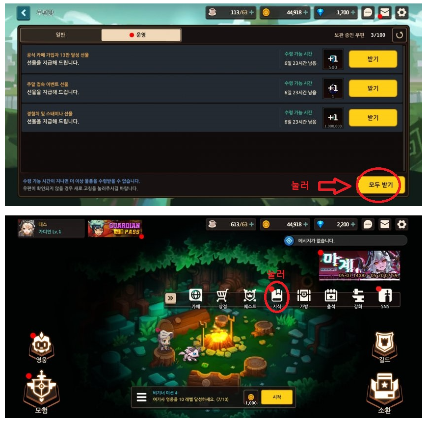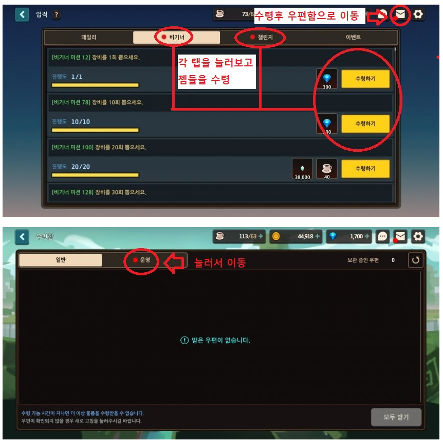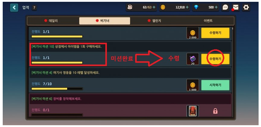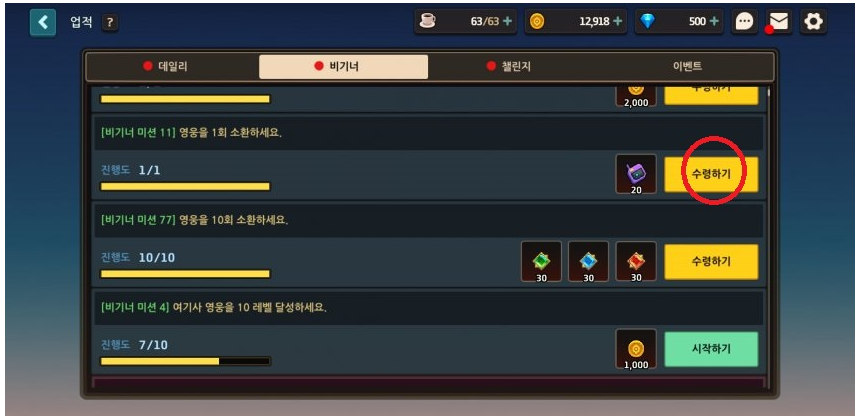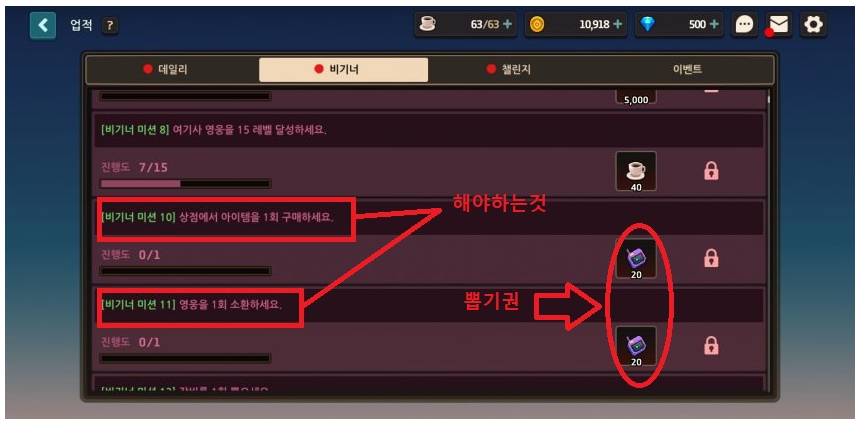 -그 후에 다시 미션창으로 이동해서 뽑기권 20개를 추가로 받아오자