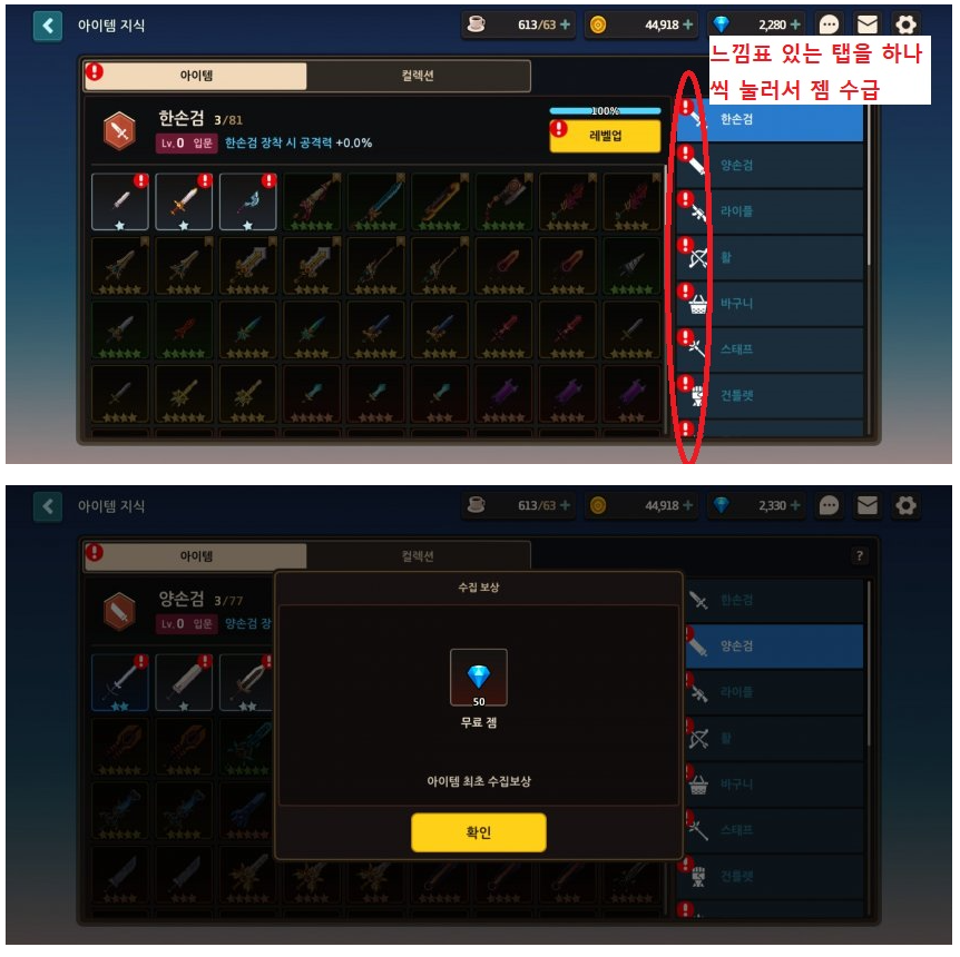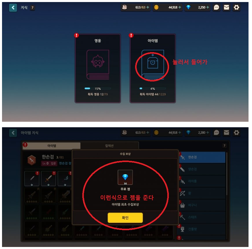 -저 화면이 안나오면 왼쪽의 재화 탭을 한 번 누르면 저 화면 나온다
