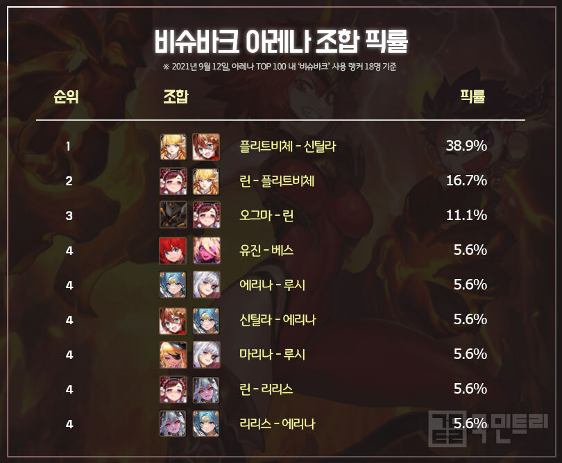 ※ 세팅 순위는 9월 12일, 아레나 TOP 100 랭커 정보를 기준으로 선정했습니다.