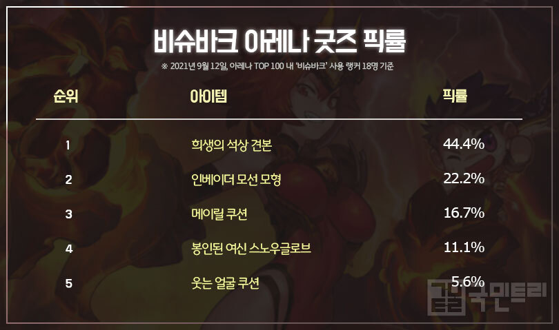 ※ 집계일 당시 ‘비슈바크’를 사용한 랭커는 총 18명이었습니다.