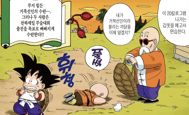 실제로 신체단련 중 몸에 무거운 걸 착용해서 신체에 압박을 주는 수련법은 꽤 흔하다. 거북이 등껍질을 착용하는 건 드래곤볼에서 무천도사가 하는 수련방식