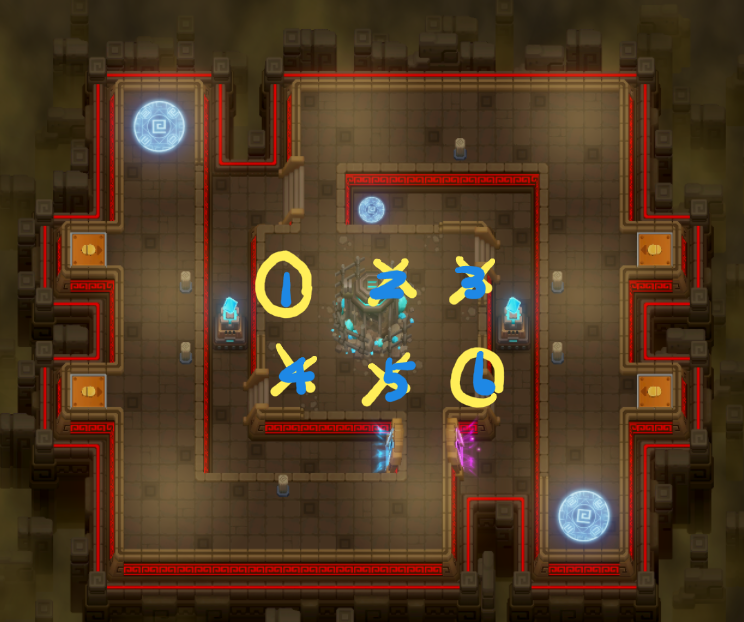 어느쪽에서 와도 평균적인 대비가 가능하나 몹이 워낙 빨라서, 사실 4명이 전부 2,5번에서 대기 타다 반응하는것보다 2명씩 1, 6번에 대기타면 적어도 4명 중 2명은 자기쪽이 되기에 초동진압 어느정도 가능해짐