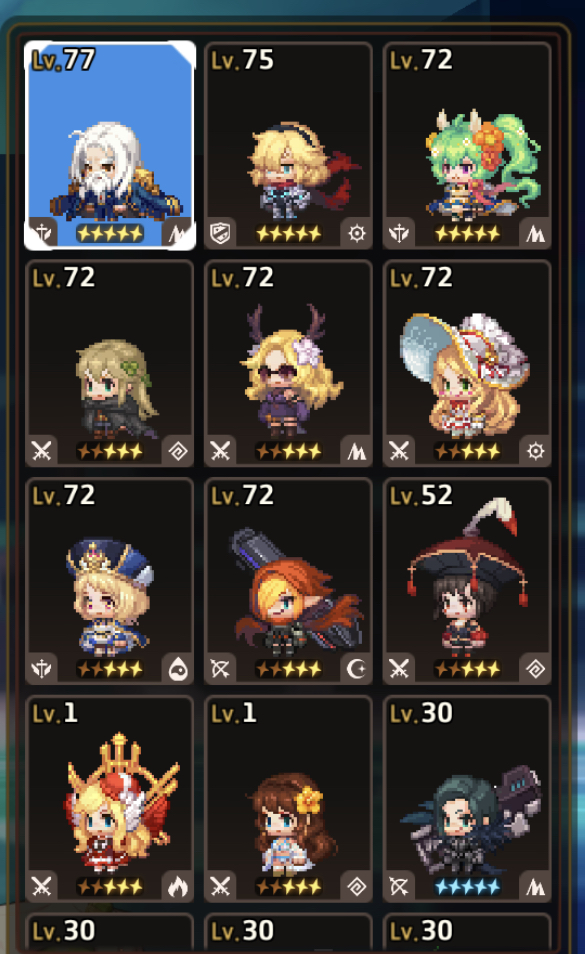 미공/카마엘 등 많이 키운 캐 위주로 깨시고