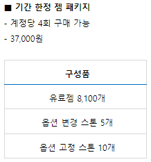 저는 이번에는 '기간 한정 젬 패키지'만 1~2개 정도만 지르려고 합니다.
