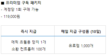 길레유저다보니, 이번 신캐는 딱히 끌리지 않아서 '프리미엄 구독 패키지'까지는 지르지 않을것 같습니다.