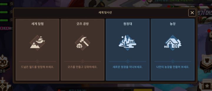 1.기존 세탐 하는 곳 가면 원정대랑 농장이 생겼는데, 원정대부터 들어가자.