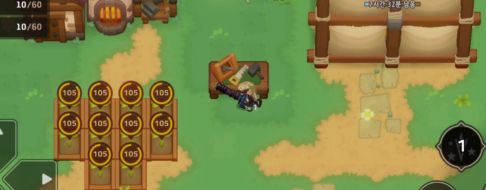 6.이제 아까 위에 나왔던 농장을 들어가주자. 농장은 척봐도 뭔짓을 해야할지 뻔히 보이기에, 위 사진처럼 건물들 지어주고 텃밭을 배치해준다.