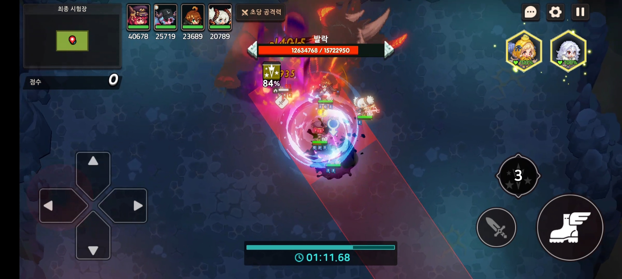 클리어 영상에 나온 묶인 서브캐릭터를 바로 풀어 돌진 패턴을 스킵한 경우