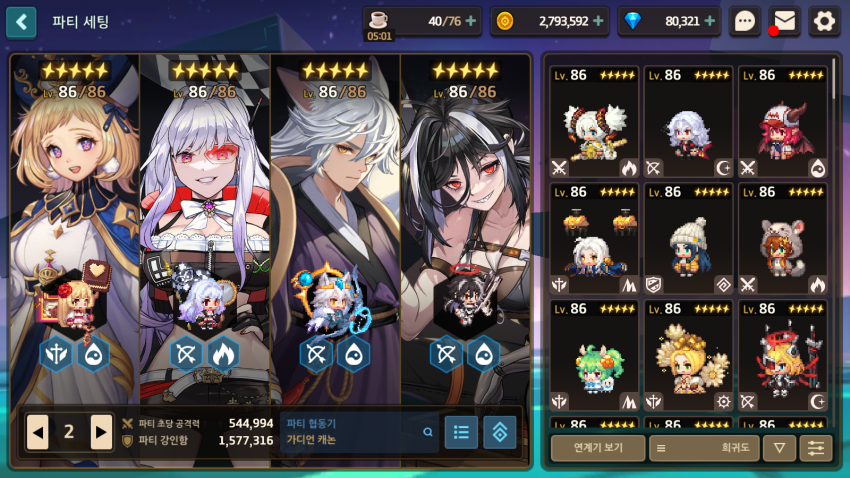 결론을 내자면 순수 잡몹전만 하는 스테이지면 무충캐를 넣는게 좋고 보스전이 섞였으면 무충 빼고 무난하게 짜는 걸 권장합니다. 이제 조합 추천 하는걸로 마무리 하겠습니다, 어디까지나 이게 제 생각으로는 최선이라는거지 서브딜러의 경우 다른 캐릭으로 대체할 수 있습니다. 서브딜러는 어떻게든 죽지만 않게 육성하고 리더가 무스 잘쓰는게 제일 중요해요. 파티버프가 지나치게 중복 되지 않는 수준(ex: 원피증 3개이상 or 크리율 2개이상)이면 충분히 대체 가능합니다.