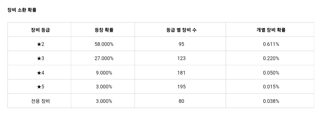 저거 2개 나눠둔 이유는, 전자는 구성품에 대한 확률이 명시되어 있는데 후자는 확률이 명시되어 있지 않아서 정확하지 않거든.