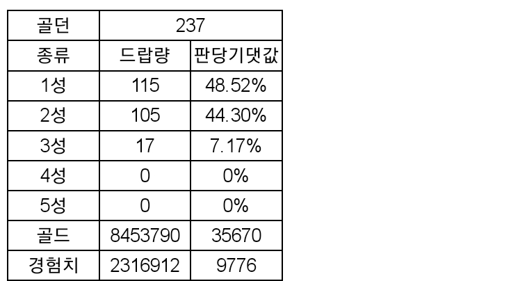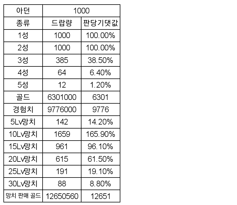 A.골던은 그정도만 돌려도 대강 효율이 뜨는데, 아던은 뜨는 아이템 종류가 골던보다 훨씬 많고 그 아이템 중에 5성템의 확률이 지나치게 낮아 시행을 훨씬 돌려야 했음.