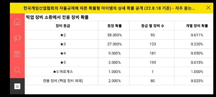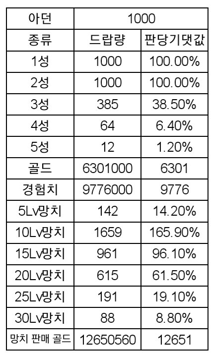 22.8.18. 기준의 확률표, 던전lv 사용