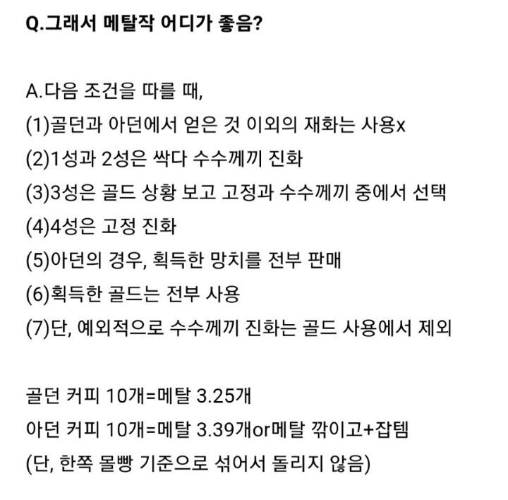 4성 + 60커피 = 30메탈