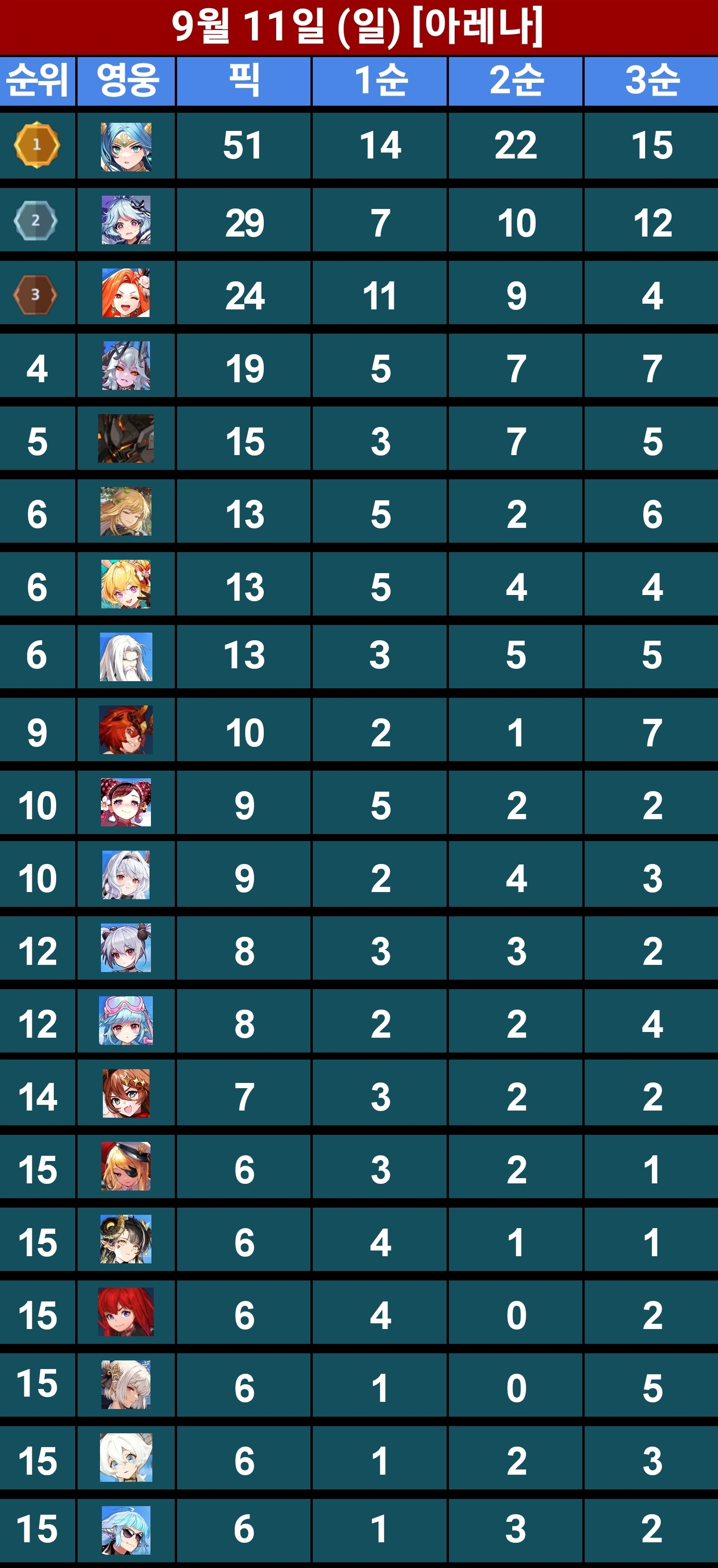 -저번 셴시 글에선가 리리스가 매팬 픽률 간신히 이긴거 보고, "맵 넓어지면 리리스가 좋은 구도라, 딴맵에선 리리스가 여전히 픽률 이길거다"