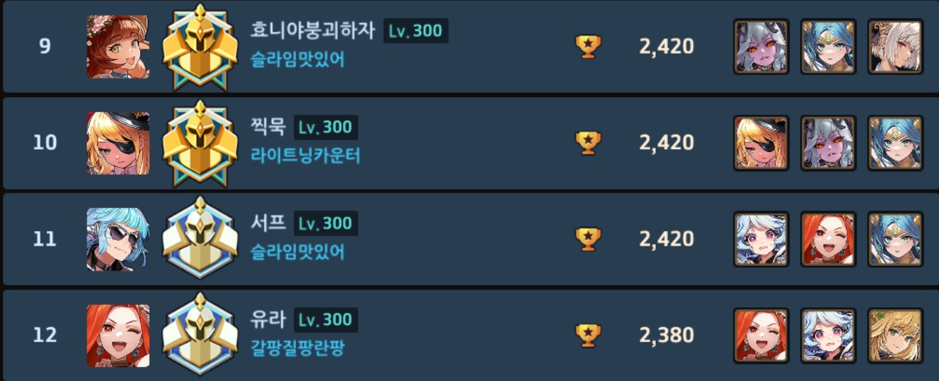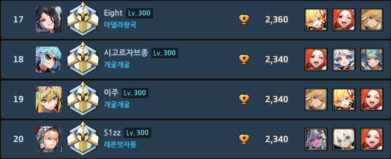 in20에서 생각보다 많은 것도 사실 설명 가능한게, 보호막 리필캐라서 양학 씹특화 캐릭이거든. 상대가 본인보다 스펙이 낮거나 동일하다는 확신이 있으면 보호막으로 인한 딜상쇄가 말도 안되게 좋아서, 비교적 상위권에서 좋을 수 밖에 없음. 힐로 딜상쇄하는 카마엘이랑 비슷한 맥락임.