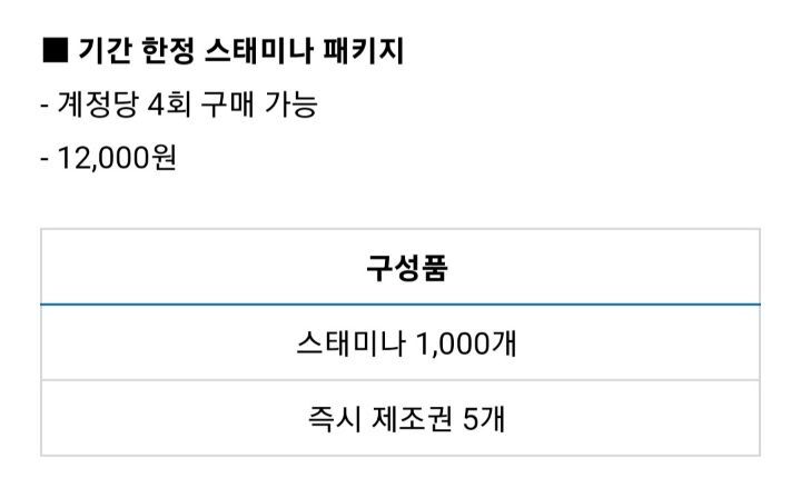 패키지티어표에 예시로 복귀패키지 한개는 과정까지 적어뒀어요