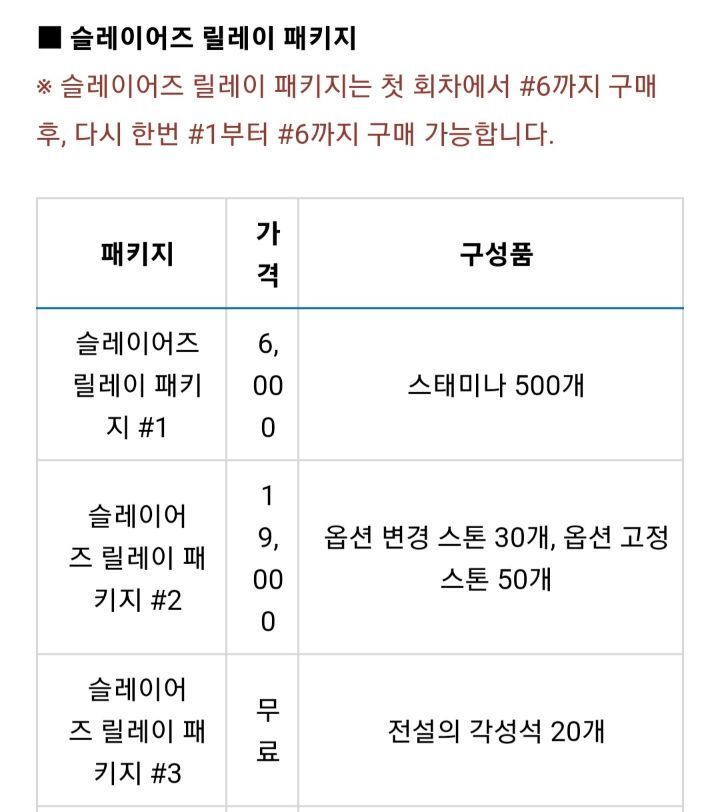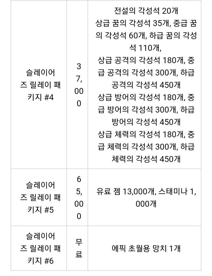 ※ 슬 릴레이 #4의 각성석은 일반던전 30일치로