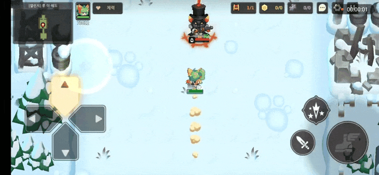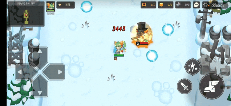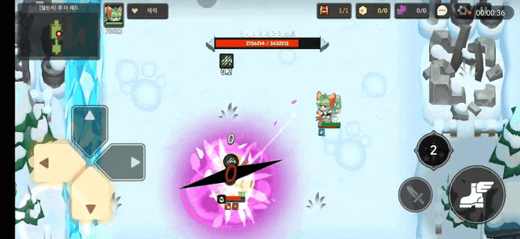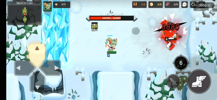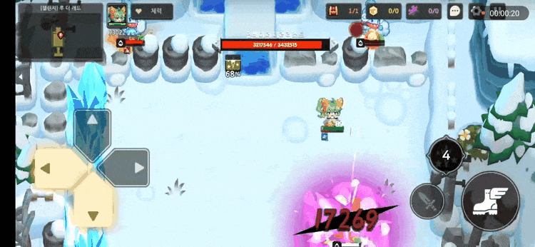 4. 보스가 눈덩이를 쓰려고하면 스킬을 써서 끊은 뒤 연계기+평타를 친다.