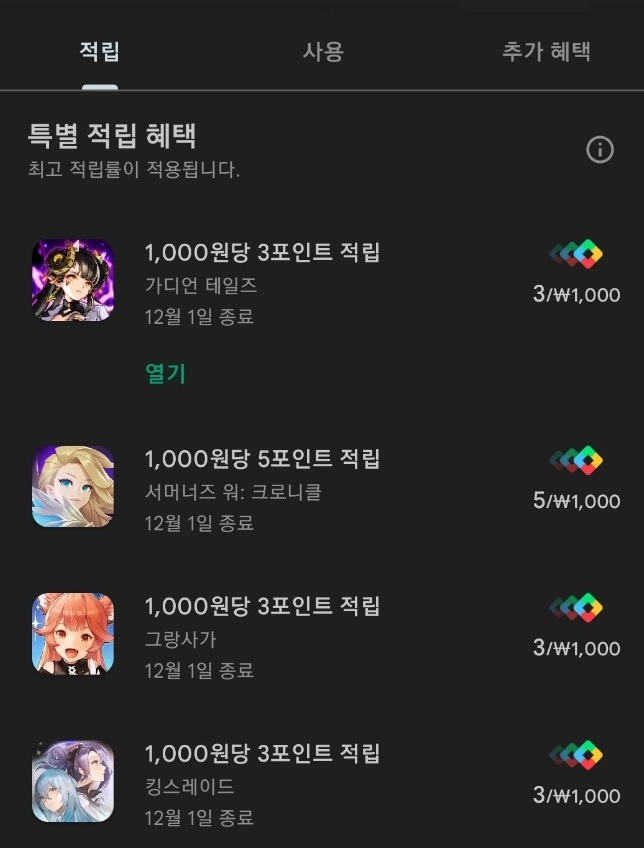 그리고, 구글플레이 스토어에서 11월까지 포인트 적립량 증가이벤트가 진행중이오니,
