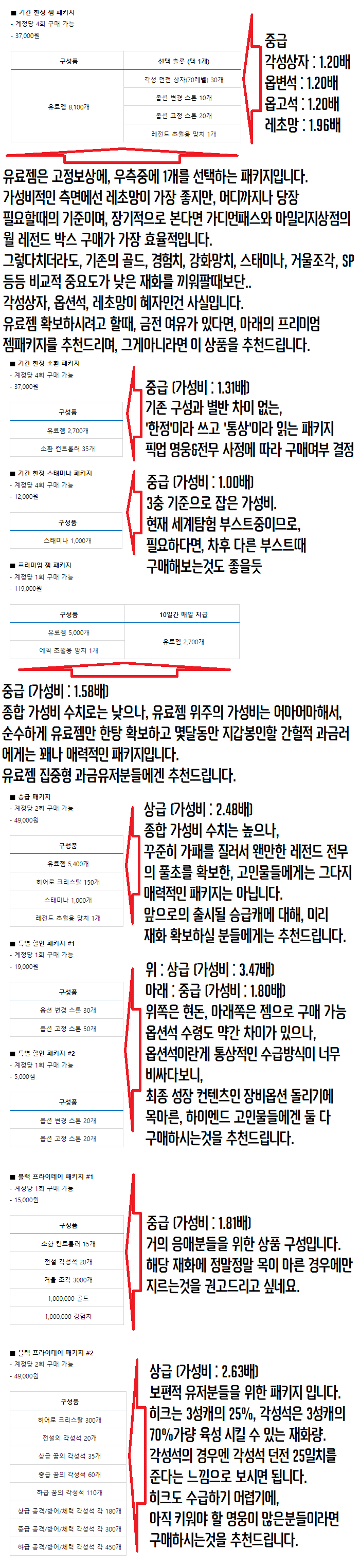 현재 '기간 한정 젬 패키지'의 부속재화가 '택1'이었다는것을 뒤늦게 확인하였습니다.