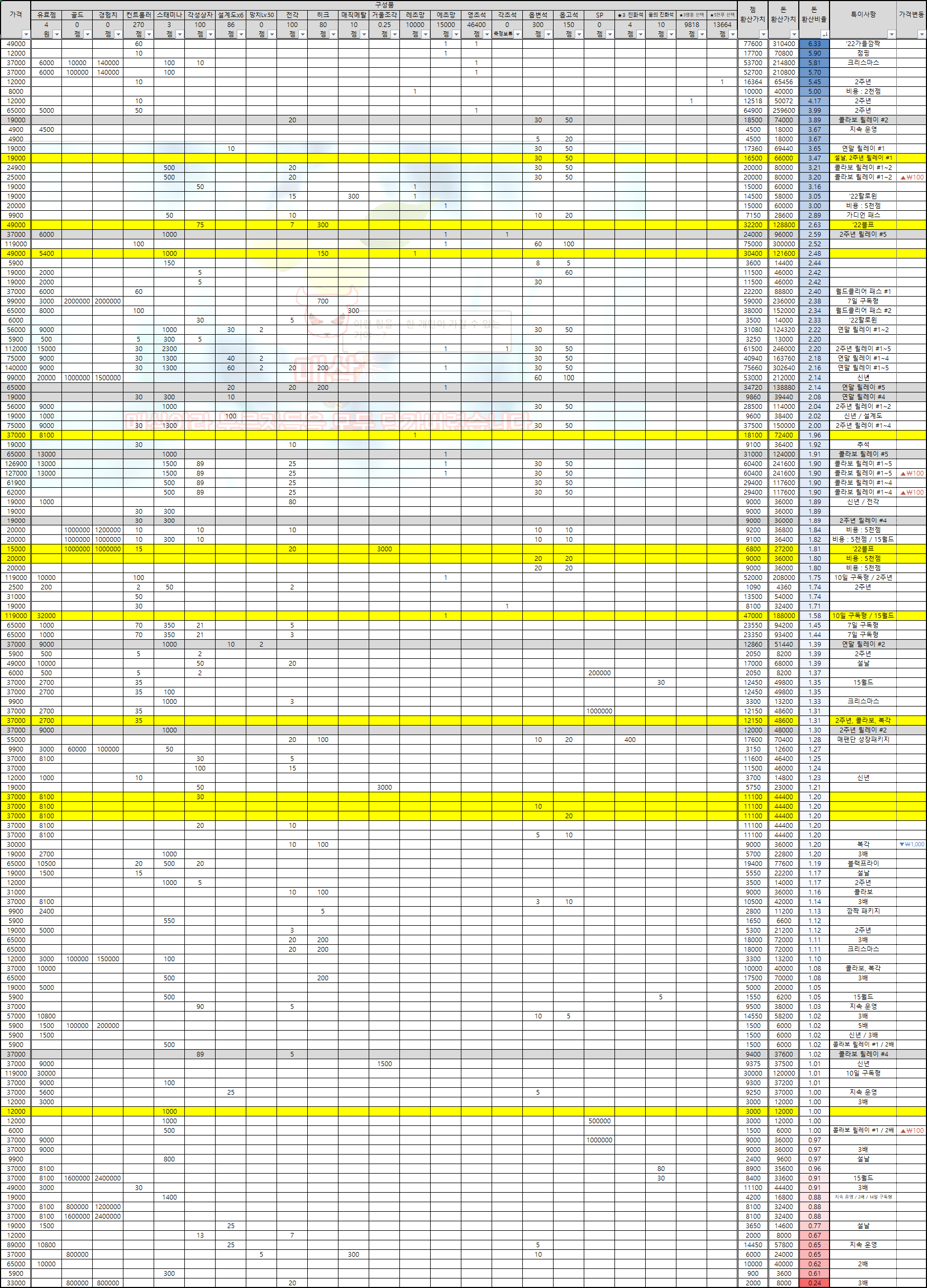 효율적인지 비효율적인지는 '돈 환산비율'로 한눈에 보기 쉽게 그라데이션으로 정리하였습니다!!