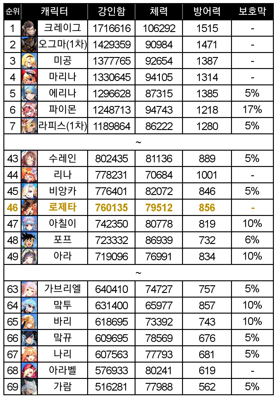 길레:당장에 로제타의 길레쪽 유틸이 전무한데다가, 초공도 독보적으로 높은게 아니다보니 길레 채용 가능성은 없음.