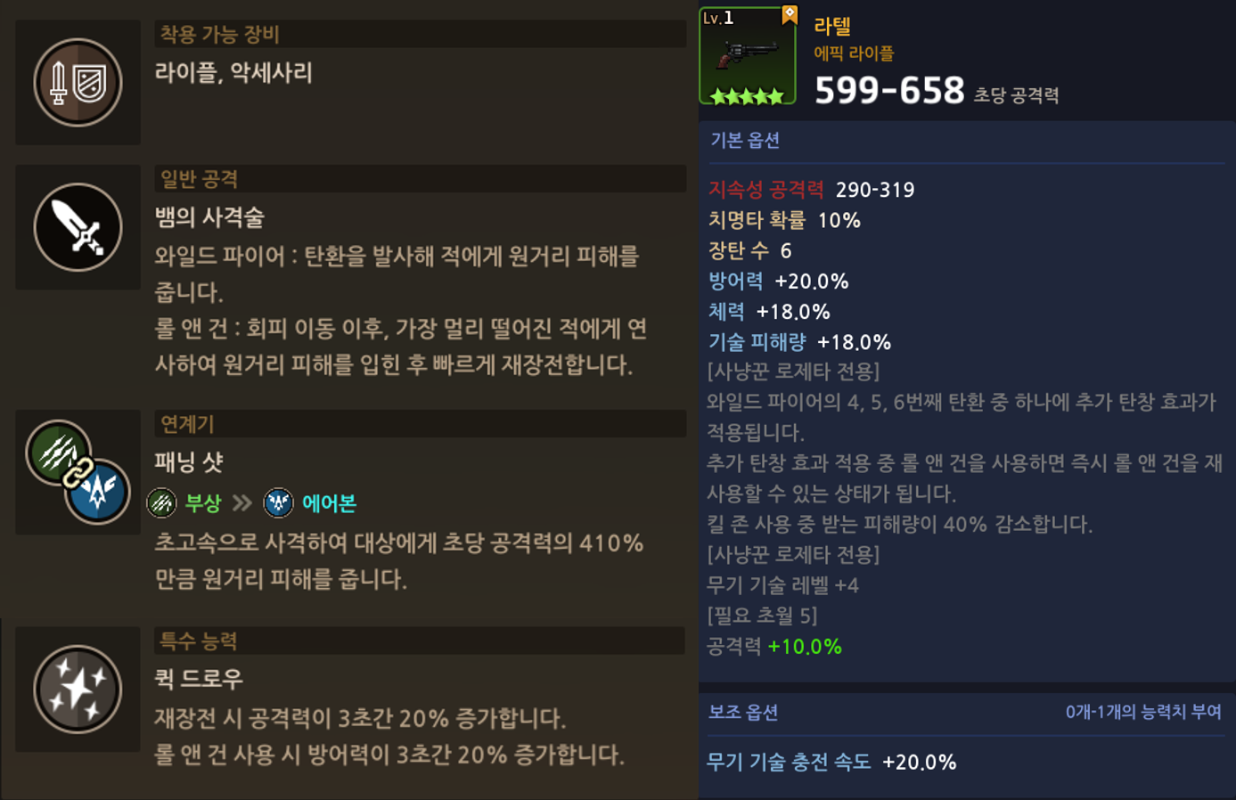 참고로 롤앤건 사용시 탄환을 아주 빠르게 소모하는데, 그렇다고 dps가 아주 극적으로 늘어나진 않는 이유는 롤앤건 순간동안은 총알의 딜이 40%로 감소함.