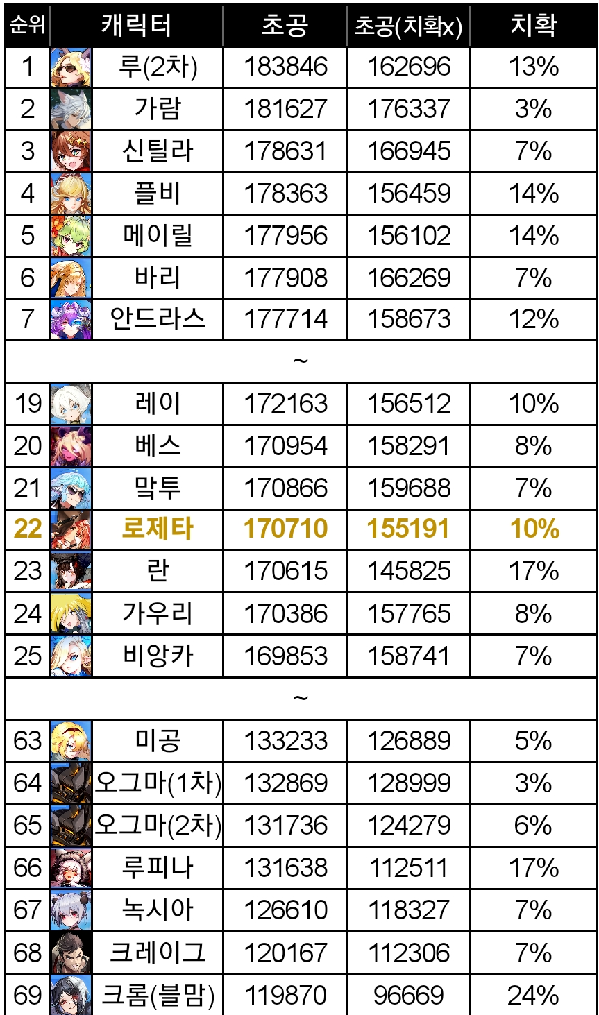 내가 최대한 기준 찾아보려고 많은 캐릭들 실험해봤는데, 돌아오는 결과는 절망 뿐이였음.