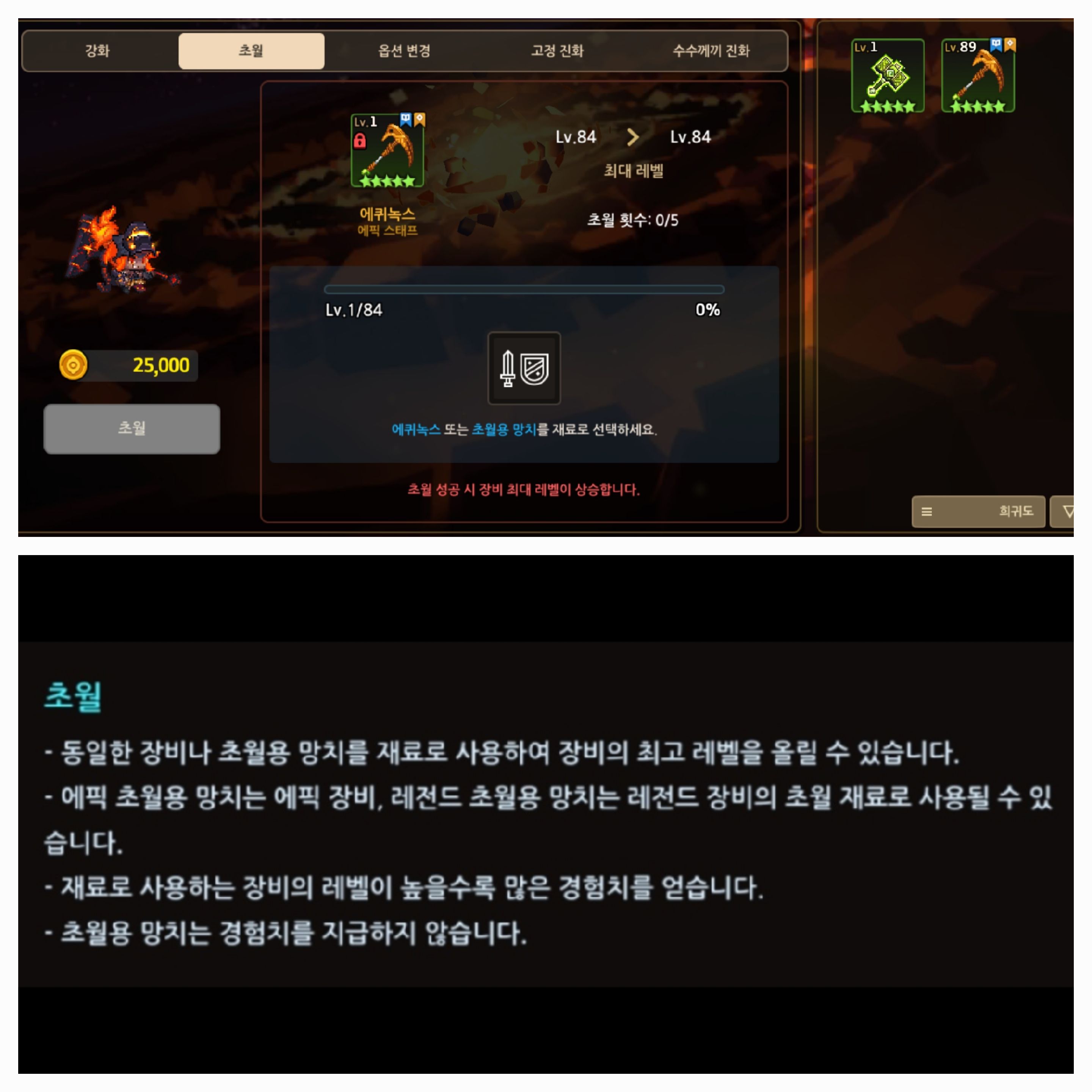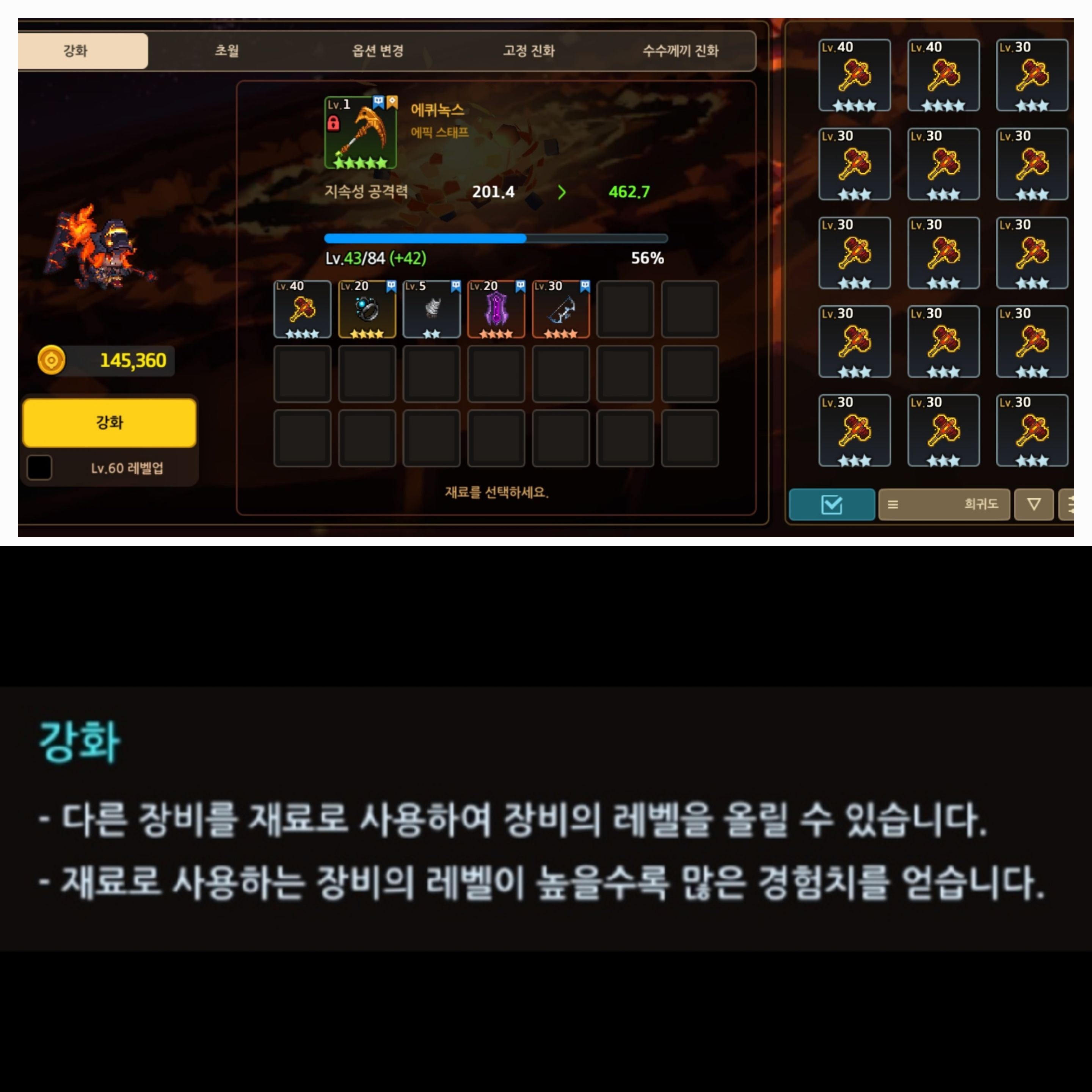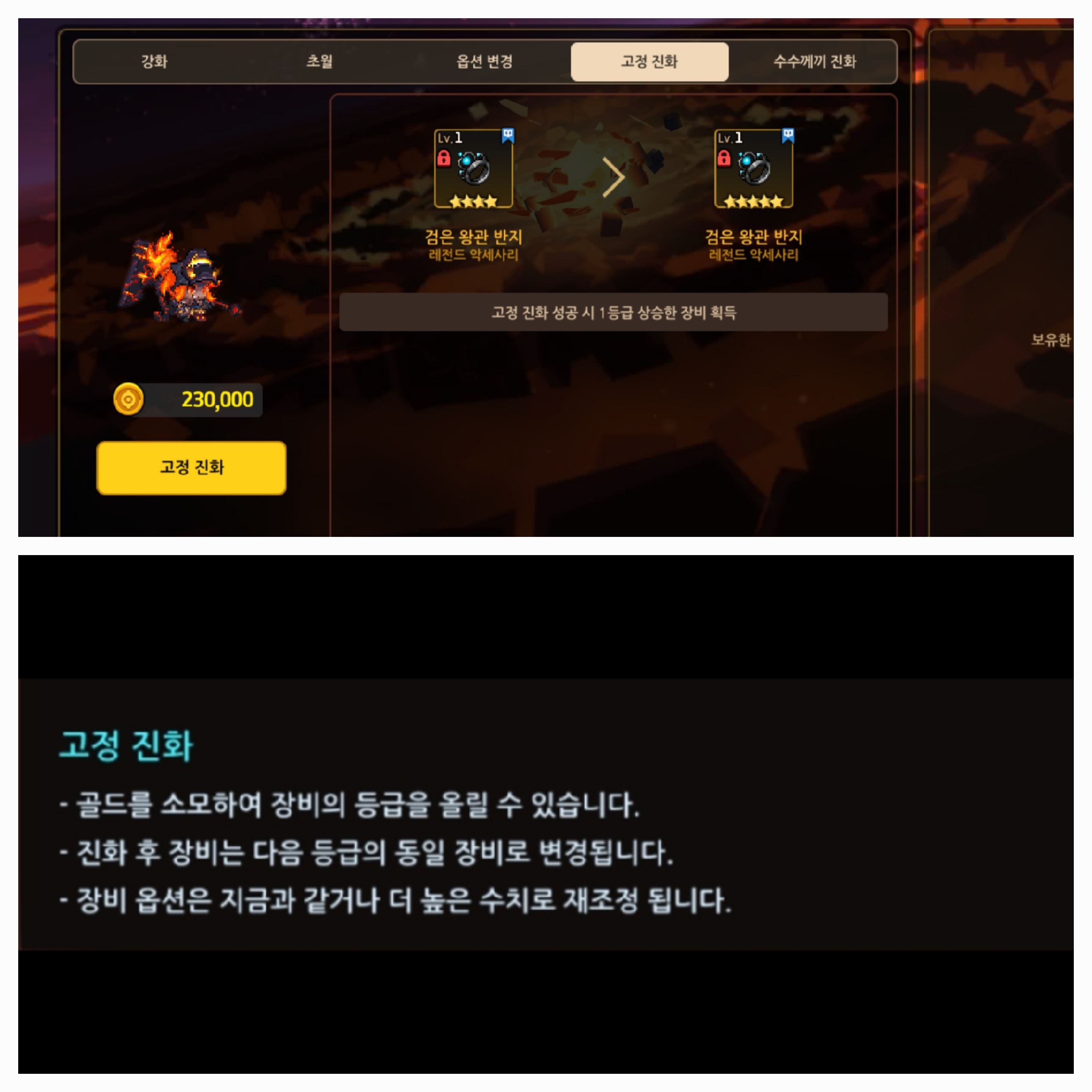 실제로 착용하여 쓸 장비는 고정진화를 해주자!