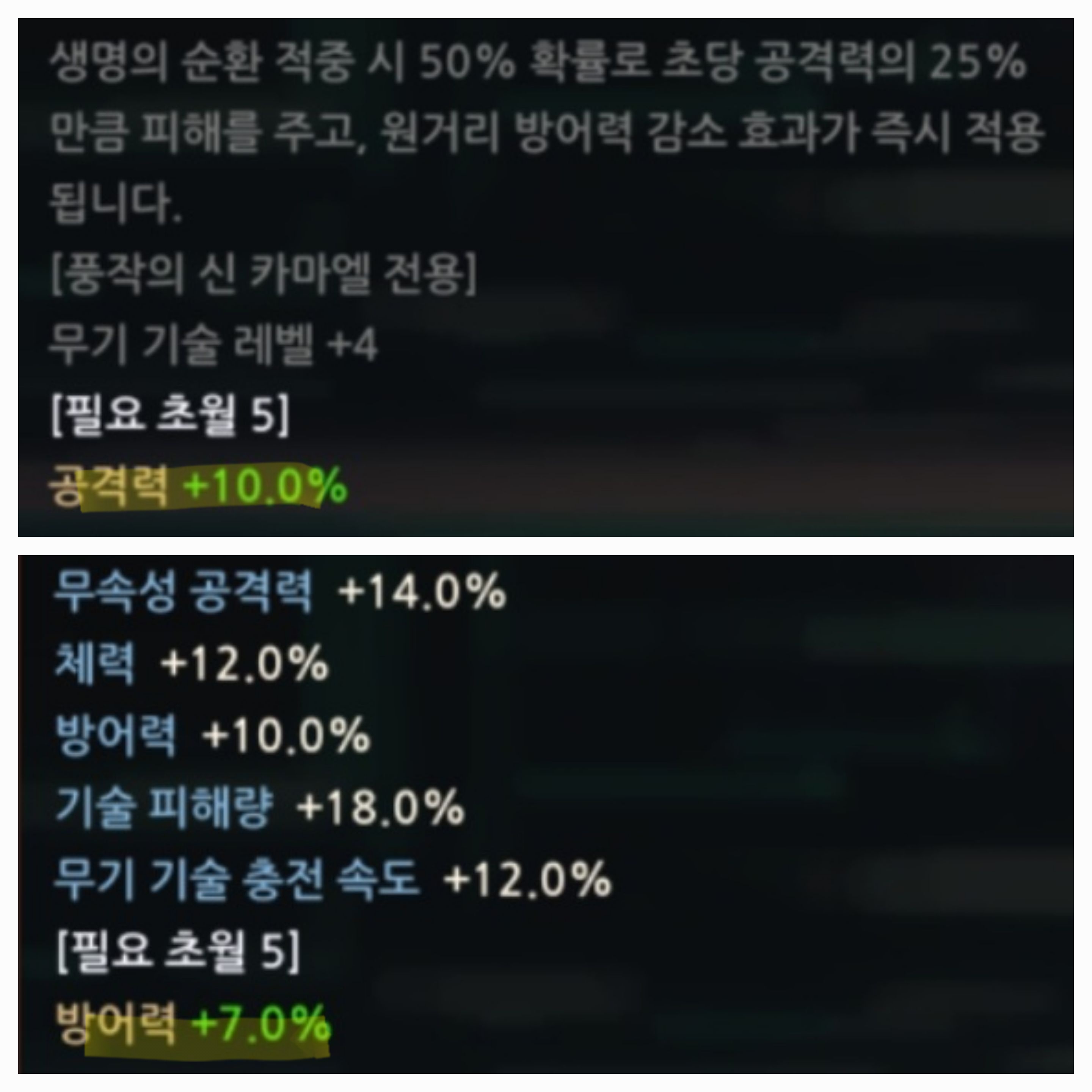 4. 체력 %, 기술 피해량 %, 보호막 %
