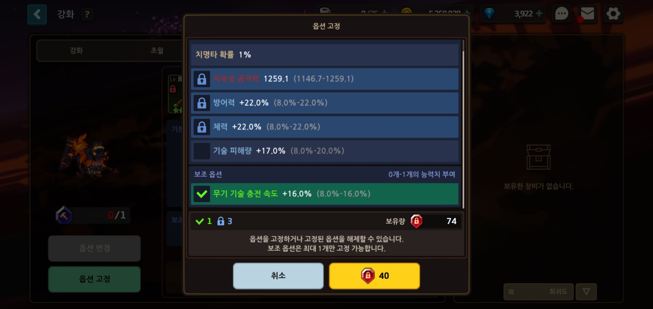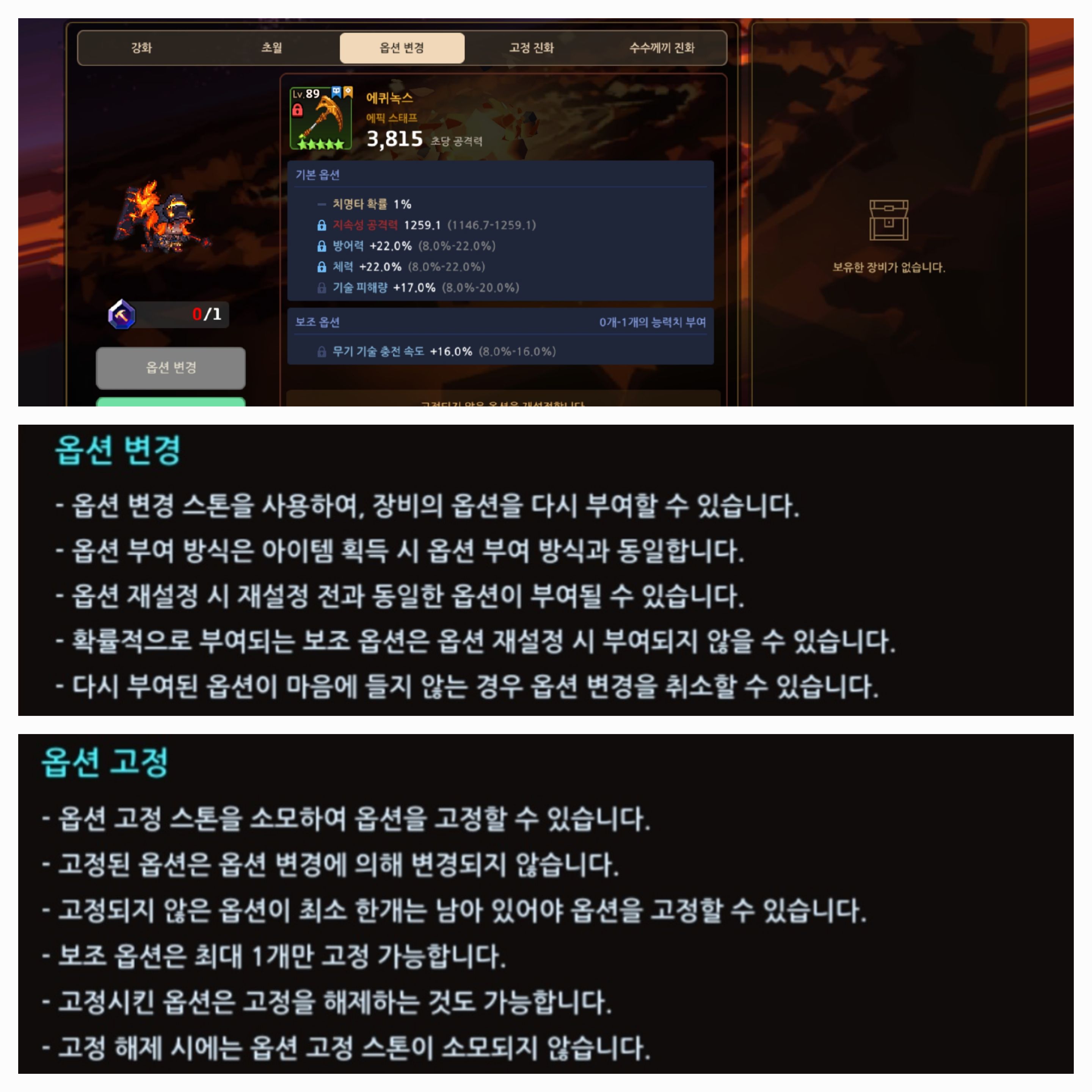 다음은 장비 강화의 꽃인 '옵션 변경'이다.