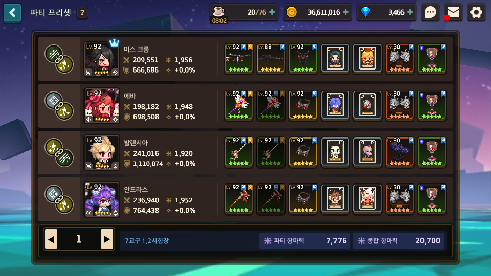 에서 길드원분의 질문?에 대답해드리기 위해 아에바, 안드라스를 다른 애들로 넣어서 진행해보았습니다