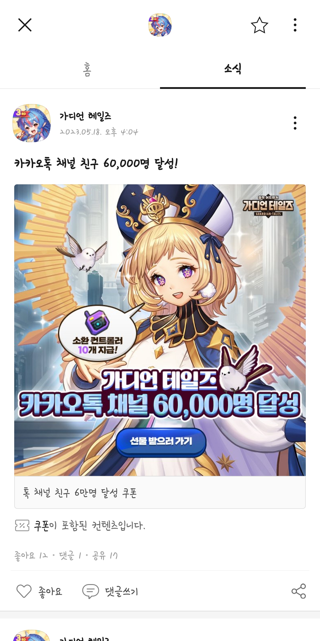 소식 칸에서 쭉 내려서 아래 글 찾기!